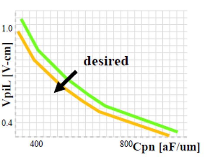 降低電容意味著削弱了電場對載子的控制力,因此需要耗費更多的電壓來彌補光學效能的不足