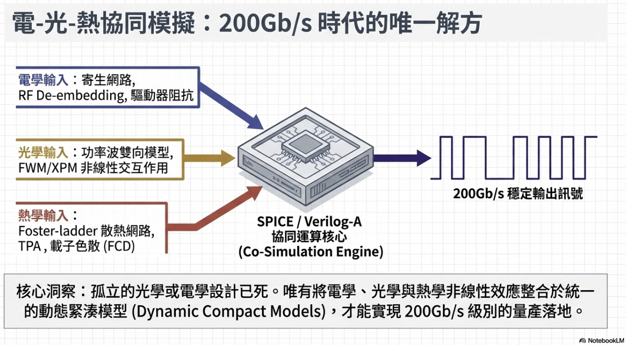 在 200Gbps 時代,只有透過此種將電、光、熱三者耦合的協同模擬引擎,才能在設計階段準確預測並補償非線性失真,獲得穩定的眼圖輸出。