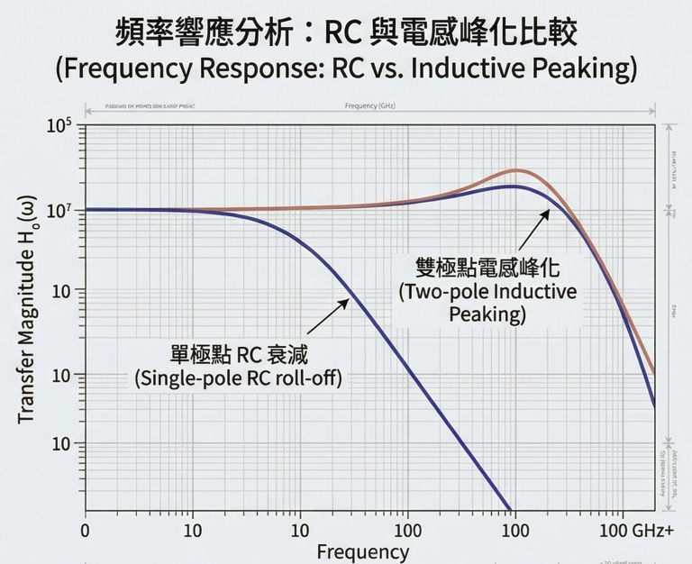 物理挑戰: 在高速驅動電路中,常需要使用電感進行峰化 (Peaking) 來擴展頻寬,但傳統平面螺旋電感會佔用極大的晶片面積。