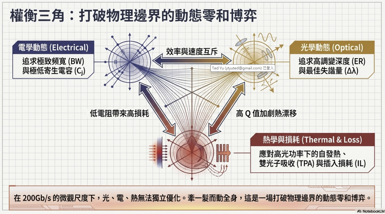在 200Gb/s 的高頻寬需求下,MRM 內部的物理機制呈現零和博弈的特性,任一參數的調整皆會引發連鎖反應: