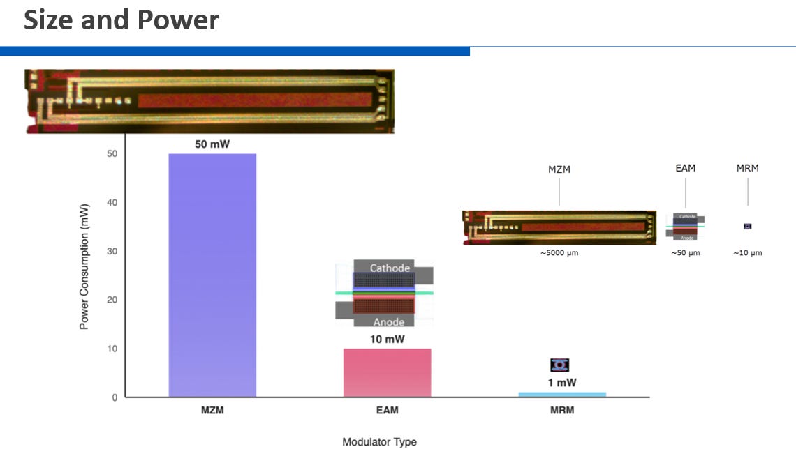 因此,在要求長距離傳輸與高環境耐受度的傳統網路交換器中,業界更傾向採用訊號最穩定但體積巨大的馬赫-曾德爾調變器(MZM),或是尋求體積與功耗相對平衡的電吸收調變器(EAM) 。MRM 在此階段多被視為難以駕馭的實驗室元件。